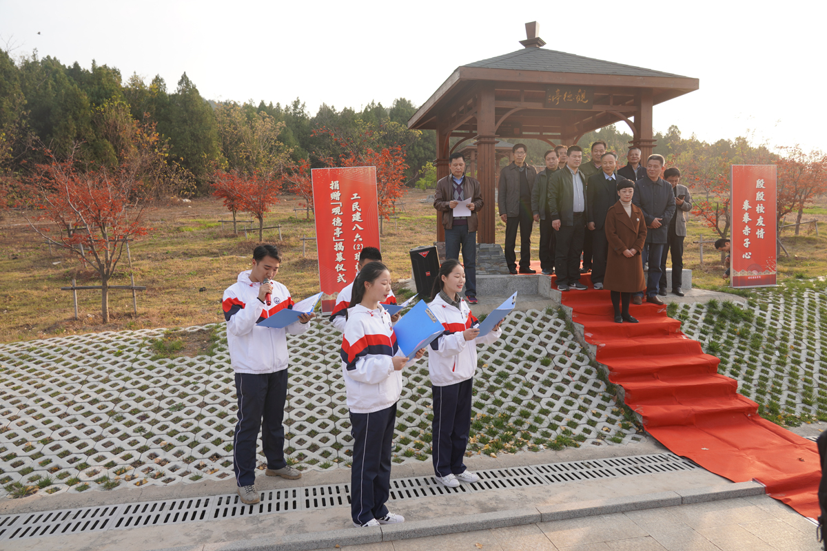 工民建86-2班是MK(中国)先进班集体,该班在校庆30年时捐建了银杏林,这次捐建“观德亭”是该班40周年校庆期间再次自发捐资建设的。