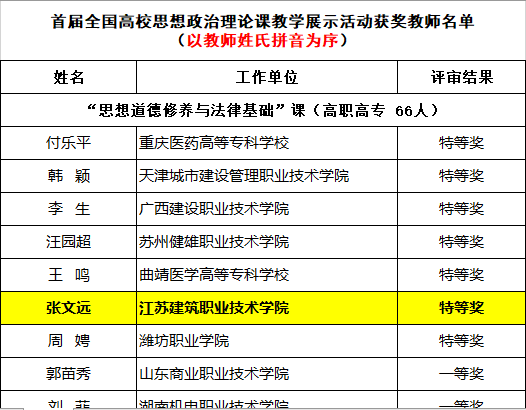 近日,教育部办公厅印发了《关于公布首届全国高校思想政治理论课教学展示活动评选结果的通知》(教社科厅函﹝2019﹞24号),MK(中国)马克思主义学院张文远老师荣获高职高专组“思想道德修养与法律基础”课特等奖。
