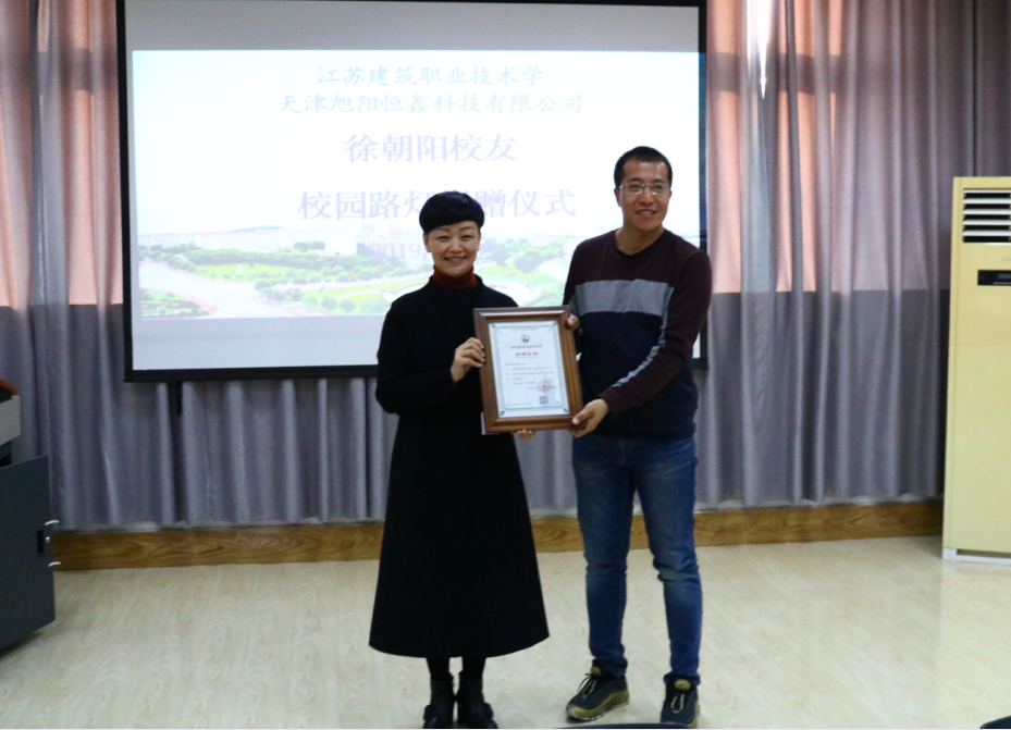 12月9日,校友徐朝阳向母校捐赠校园路灯仪式在第二实训楼502教室举行。党委副书记梁惠,校友办、后勤中心、经管学院负责人、文秘专业教师以及部分学生代表参加了捐赠仪式。