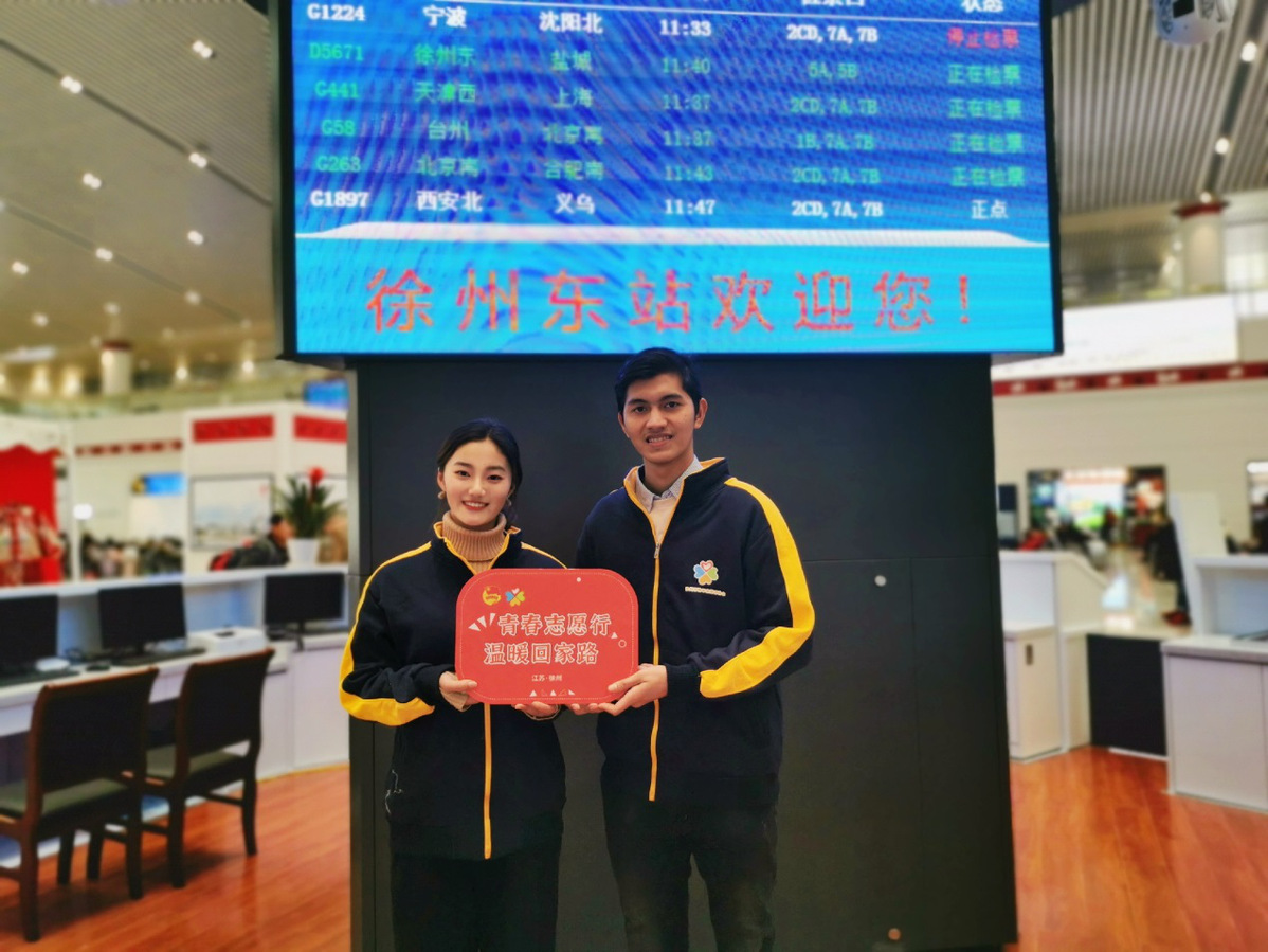 留学生志愿者的出现,也吸引了春运现场的众多目光。面对徐州广电记者的镜头,崔晨辉激动地说道,中国是自己的第二故乡,非常期待接下来的志愿服务,感受中国“春运”。他表示,这将会是三年留学生活中一次独特的文化体验。5名志愿者也纷纷庄严做出承诺,将严格遵守岗位服务纪律,努力完成志愿任务,用自己的实际行动温暖春运路上的每一个人。