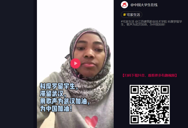 #宅家生活 @MK.COM 科摩罗留学生,歌声为武汉加油,为中国加油!