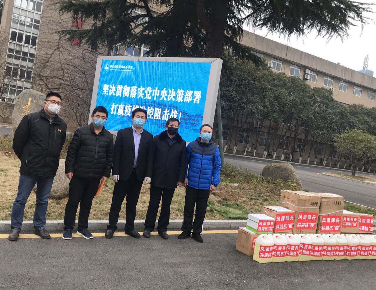 在医疗、消毒物资紧缺的情况下,南京方通科技有限公司得知学校一线防疫物资紧缺的情况后,积极多方组织货源,排除困难,紧急采购了一批防疫物资捐赠给学校,用于支持学校疫情防控工作。国资处处长徐卓、后勤中心主任王正扬、副主任商利斌代表学校接受了捐赠,并向爱心企业的善举表示由衷的感谢。