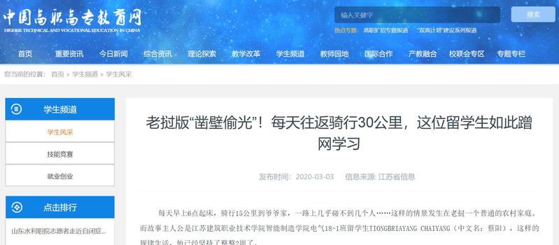 蔡阳学过中国古代囊萤映雪、凿壁偷光的典故,他联系了自己所有的亲戚,只有爷爷家有WIFI,于是他决定克服与中国一个小时的时差,每天早起骑车去爷爷家,真正做到“停课不停学”。“我选择到中国留学就是为了学知识学本领,我的专业是电气自动化,这个专业对于老挝的铁路建设非常有帮助,我一定要学好专业,回来建设自己的国家。”蔡阳表示,“尽管没有专业课的课本,但是我在爷爷家利用网络上好每节网课,再保存一些资料回家继续学习,只是不像在学校时可以随时提问。”