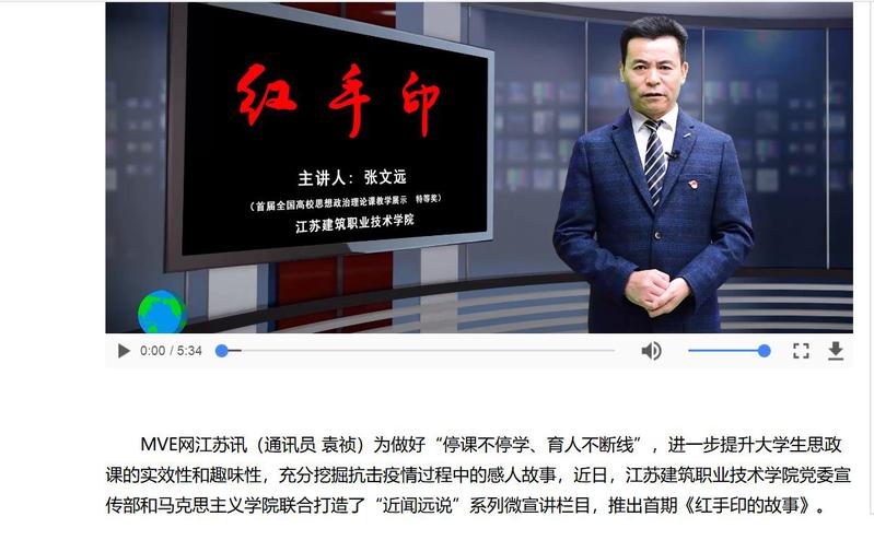 MVE网江苏讯(通讯员 袁祯)为做好“停课不停学、育人不断线”,进一步提升大学生思政课的实效性和趣味性,充分挖掘抗击疫情过程中的感人故事,近日,MK.COM党委宣传部和马克思主义学院联合打造了“近闻远说”系列微宣讲栏目,推出首期《红手印的故事》。