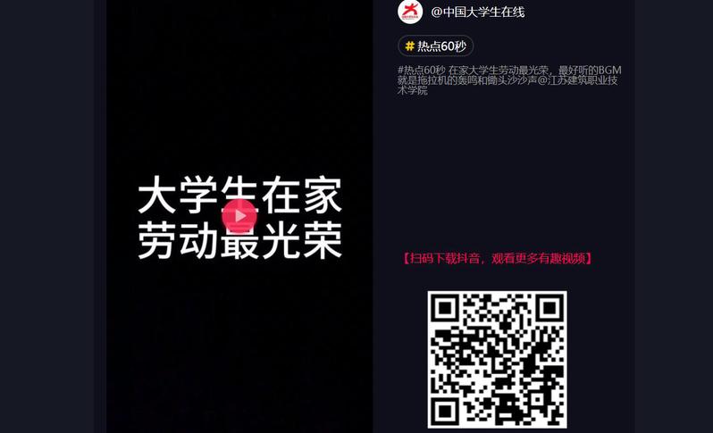 #热点60秒 在家大学生劳动最光荣,最好听的BGM就是拖拉机的轰鸣和锄头沙沙声@MK.COM