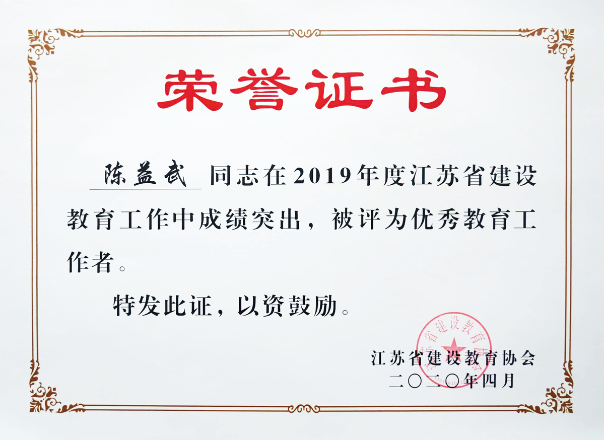 4月16日,江苏省建设教育协会传来喜讯,MK(中国)荣获2019年度建设教育产教融合工作先进单位、建设教育工作先进单位,陈益武同志荣获优秀教育工作者。