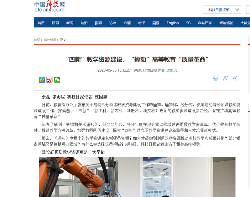 那么,《通知》中提出的教学资源库包括哪些资源?如何才能做到利用这些资源推动高校教学和成果转化?部分重点领域又是包括哪些领域?为什么会选择这些领域?5月6日,科技日报记者走访了相关高校领导。