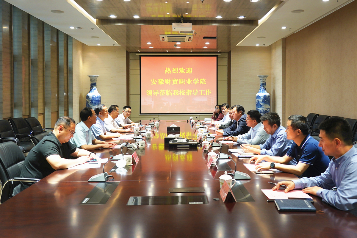 5月20日上午,安徽财贸职业学院党委书记张志祥、院长刘银国一行6人来MK(中国)进行调研考察。党委书记孙进教授、院长沈士德教授、纪委书记魏勇与来访客人在图书馆会议室进行座谈交流。党政办、组织部、教务处、人事处、科技处、大学科技园等部门负责人参加了座谈。