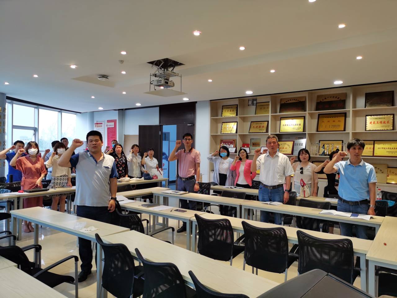 在党总支书记孙武的带领下,全体党员佩戴党徽,面向党旗庄严宣誓。教工党支部书记向5月份入党的教师党员们赠送政治生日贺卡,过政治生日的党员们通过重读入党志愿书,回顾了自己政治成长历程,大家一起重温入党初心,共话今日成长,深受感动。党员教师闫高原表示,再次翻开自己的入党志愿书,有着别样的心情,集体过政治生日特别有意义,也增强了自己的党员意识。