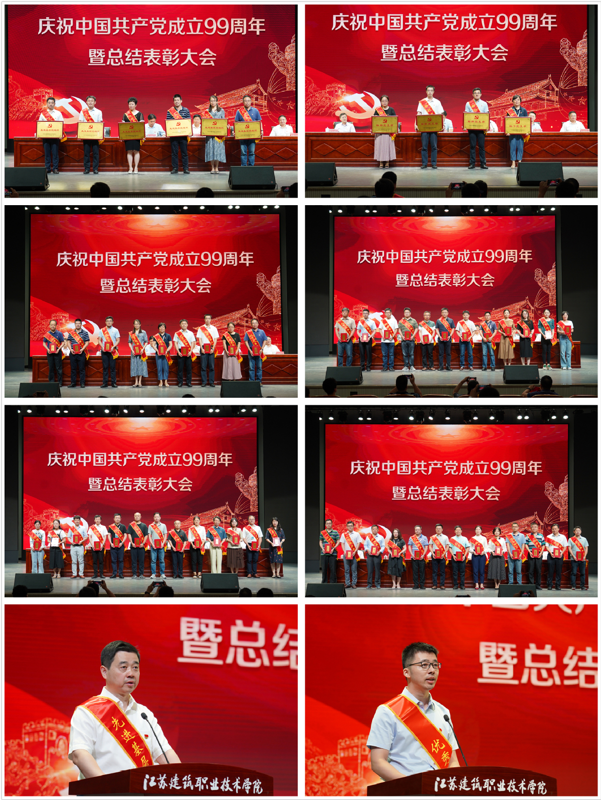 会上,党委副书记梁惠宣读表彰决定。与会领导向6个先进基层党组织、4个标杆党支部、9名优秀党务工作者和39名优秀共产党员颁奖。徐州市教育系统优秀共产党员、机关第一党总支书记、党政办公室主任张衡宇同志,优秀共产党员代表建筑装饰学院室内设计教研室王炼老师分别代表先进基层党组织、优秀共产党员交流发言。