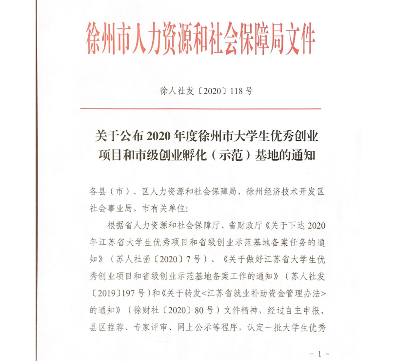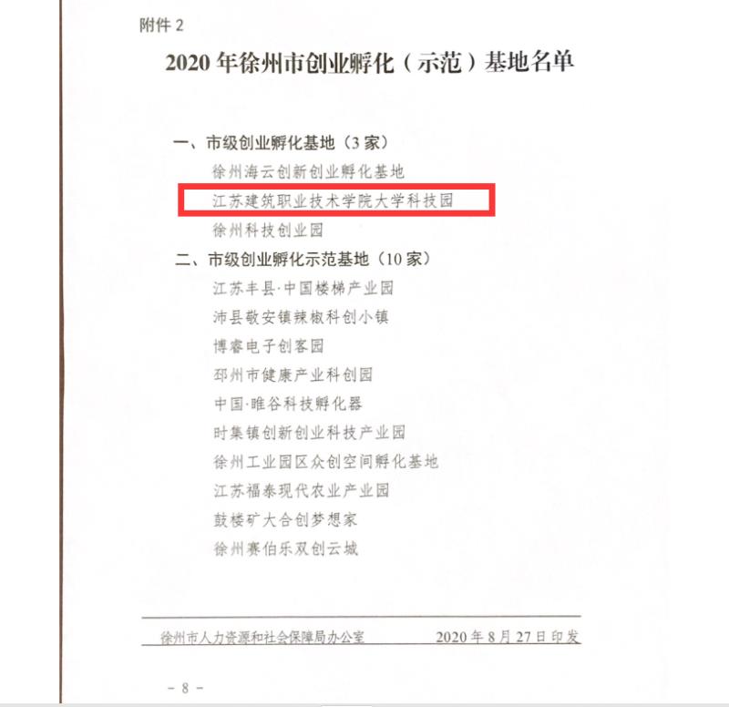 9月1日,徐州市人力资源和社会保障局网站公布,MK(中国)大学科技园被认定为2020年徐州市市级创业孵化(示范)基地。