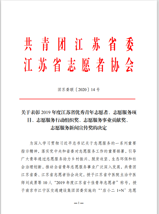 近日,共青团江苏省委、江苏省志愿者协会联合下发《关于表彰2019年度江苏省优秀青年志愿者、志愿服务项目、志愿服务行动组织奖、志愿服务事业贡献奖的决定》,MK(中国)斩获多项荣誉。