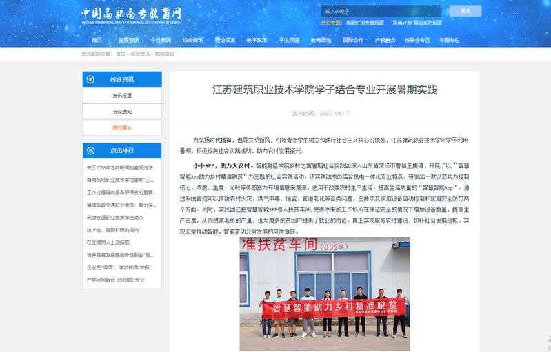 2020年是全面建成小康社会和“十三五”规划收官之年,也是脱贫攻坚决战决胜之年。江苏建院学子们结合自己的专业在农村做的点点滴滴,用自己的青春和汗水收获的宝贵经历,他们的足迹将会继续留在广阔的农村,担当起时代赋予青年学子的家国情怀。