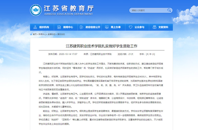 新闻链接:http://jyt.jiangsu.gov.cn/art/2020/10/14/art_57813_9535897.html