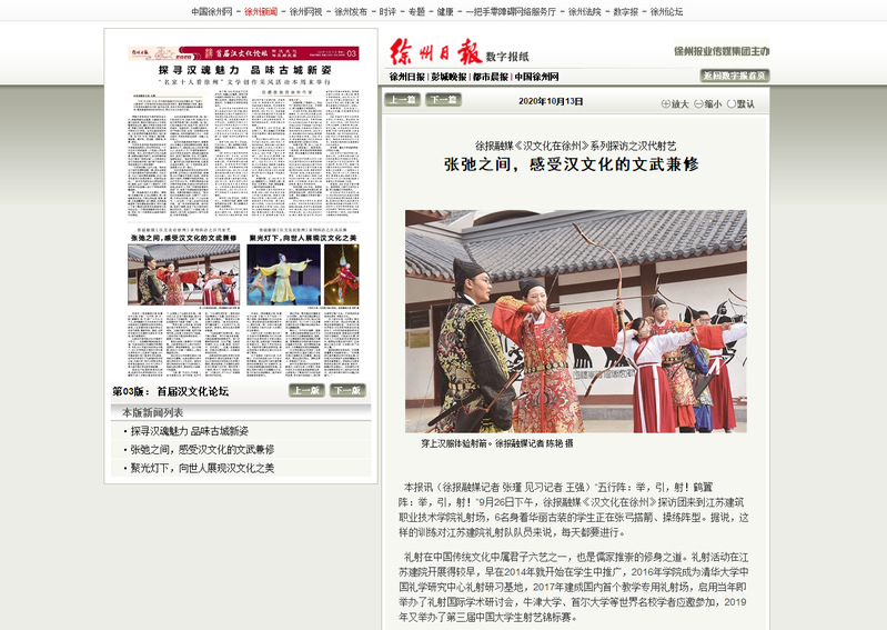 在韩老师和礼射队同学们手把手的教学中,探访记者体验了礼射,也从中感受到中华传统文化的博大精深。探访结束前,江苏建院礼射队队员们表演了五行阵、锋矢阵等7个箭阵,展示了“犯我中华,虽远必诛”“大道之行,天下为公”的爱国情怀和中华风范。