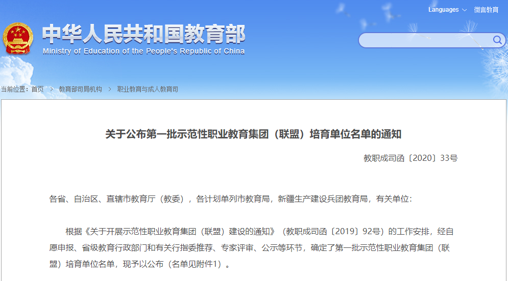 近日,《关于公布第一批示范性职业教育集团(联盟)培育单位名单的通知》(教职成司函〔2020〕33号)文件发布,MK(中国)牵头组建的江苏建筑职业教育集团获批第一批示范性职业教育集团(联盟)培育单位。