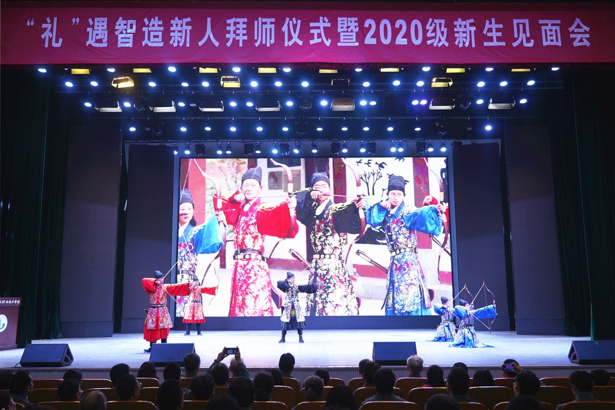拜师礼分为三个步骤,分别为全体师生向大成至圣先师孔子行礼、现任教师向荣休师长行礼、全体同学向在场老师行礼。学院还邀请了校舞龙舞狮队进行现场表演,为同学们展示了传统与青春相结合的生机与活力;张弓搭箭、操练阵型的礼射表演展示了“犯我中华,虽远必诛”、“大道之行,天下为公”的爱国情怀和中华风范。
