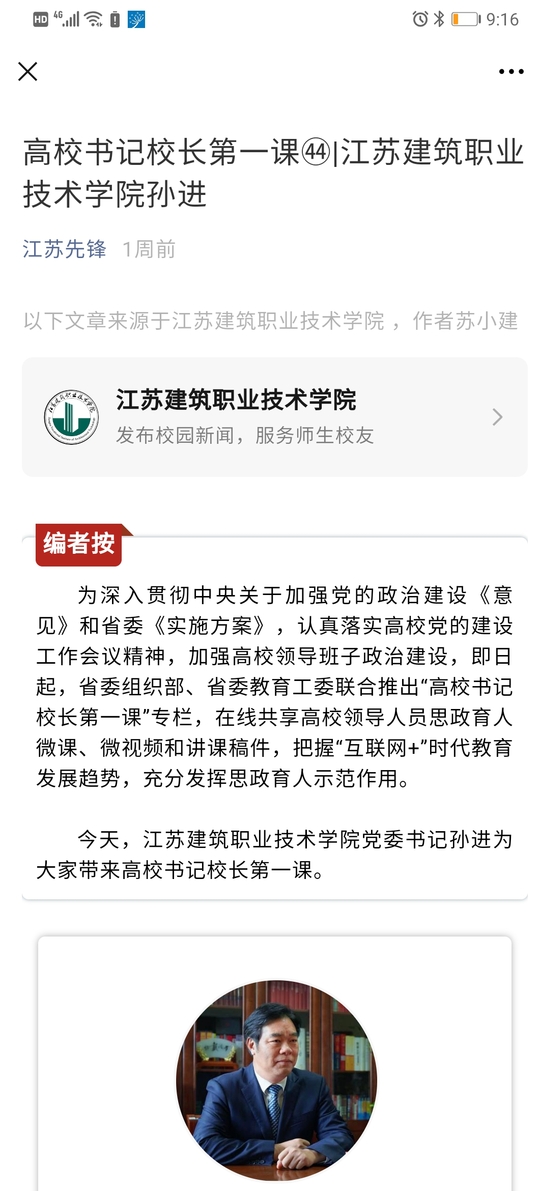 各位同学,你们的到来,为蓬勃发展的江苏建院注入了新鲜血液。看到你们青春洋溢的面孔,感受你们拼搏奋进的朝气,让身为教师的我们更加深刻体会到了“得天下英才而育之”的快乐与幸福。作为师长,我有几点建议与大家共勉。