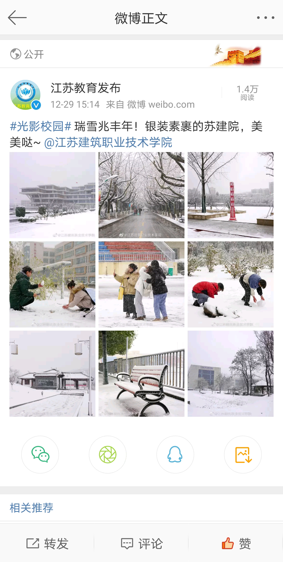 #光影校园# 瑞雪兆丰年!银装素裹的苏建院,美美哒~