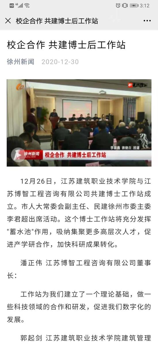 12月26日,MK.COM与江苏博智工程咨询有限公司共建博士工作站成立。市人大常委会副主任、民建徐州市委主委李君超出席活动。这个博士工作站将充分发挥 蓄水池作用,吸纳集聚更多高层次人才,促进产学研合作,加快科研成果转化。