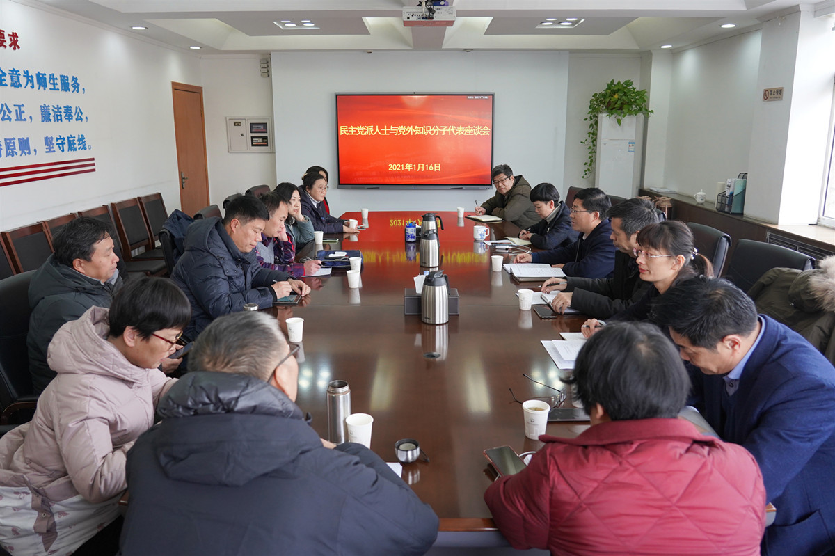 1月16日下午,MK(中国)召开民主党派人士与党外知识分子座谈会。院长沈士德教授,党委副书记梁惠,民革、民盟、九三学社、致公党、民建、无党派人士等代表同志参加了座谈会。会议由党委组织部、党委统战部部长汪玉静主持。