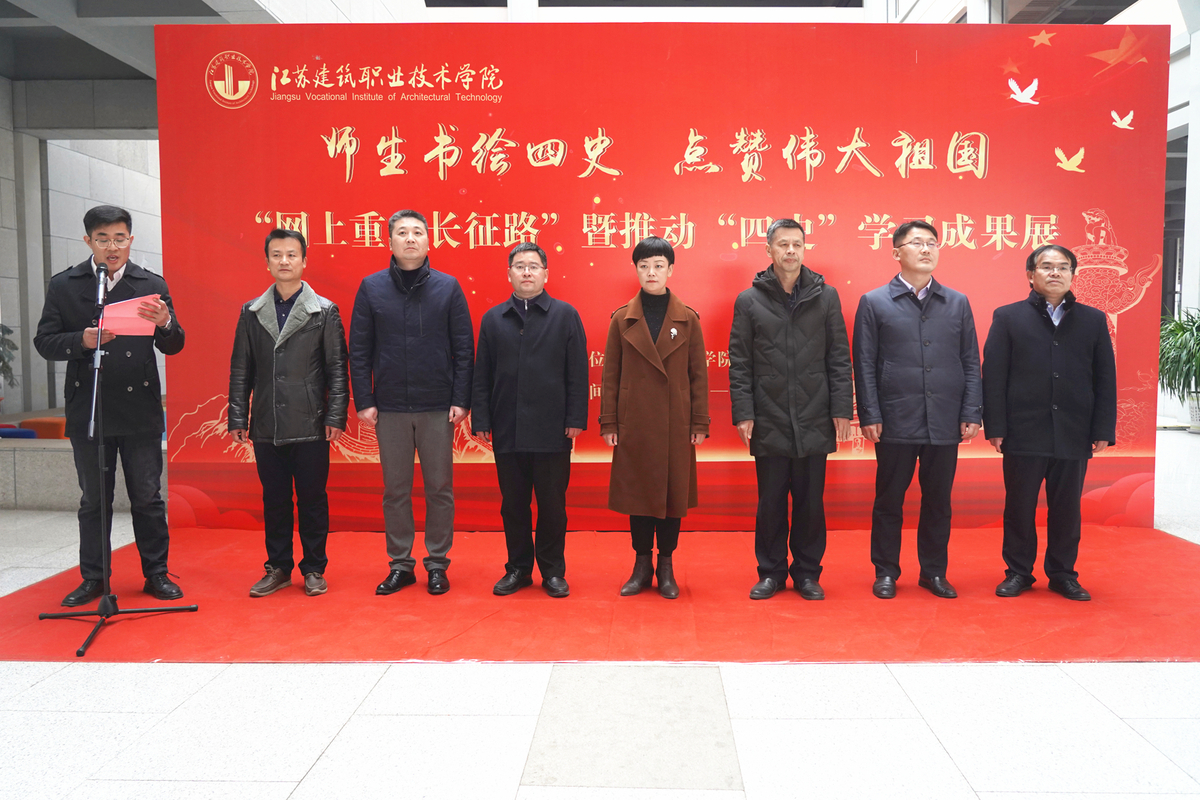 1月19日,建筑装饰学院在学校图书馆一楼大厅举行“网上重走长征路”暨推动“四史”学习成果书画展开展仪式。党委副书记梁惠出席活动并致词,党委组织部、党委宣传部、党委学工部、团委等部门负责人,建筑装饰学院全体教师及部分学生参加了仪式。