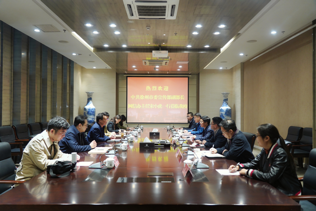 3月26日下午,徐州市委宣传部副部长、网信办主任宋小虎,徐州市委网信办副主任李森等一行6人莅临MK(中国),调研高校意识形态建设情况,网络意识形态责任制落实情况。院长沈士德教授、党委宣传部、党委学工部、党委保卫部、信息与网络中心等部门负责同志参加座谈。