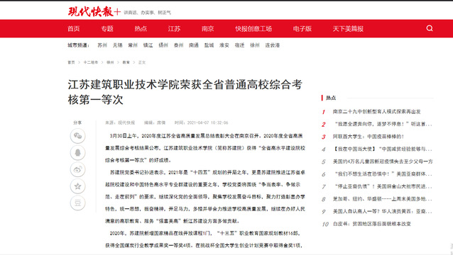 3月30日上午,2020年度江苏全省高质量发展总结表彰大会在南京召开。2020年度全省高质量发展综合考核结果公布,MK.COM(简称苏建院)获得“全省高水平建设院校综合考核第一等次”的好成绩。