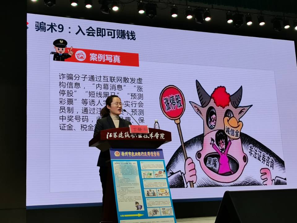 为普及校园防诈骗网络安全知识,提高师生防诈反诈意识,4月27日下午,建筑建造学院邀请中国农业银行铜山支行丁静云在会堂作《防电信网络诈骗,打击账户出租出借》的专题讲座,学院全体教师和2019级、2020级全体学生参加了讲座。