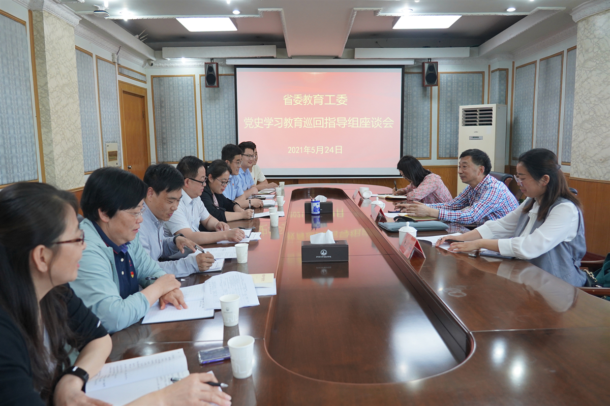 5月24日下午,省委教育工委党史学习教育第六巡回指导组到MK(中国)调研指导,调研指导工作汇报会在建筑技术馆会议室举行。第六指导组组长、江苏理工学院原党委书记王建华,第六指导组副组长、苏州农业职业技术学院原党委书记李振陆,指导组全体成员,校党委书记孙进教授、党委副书记梁惠及MK(中国)党史学习领导小组各工作组组长参加会议。