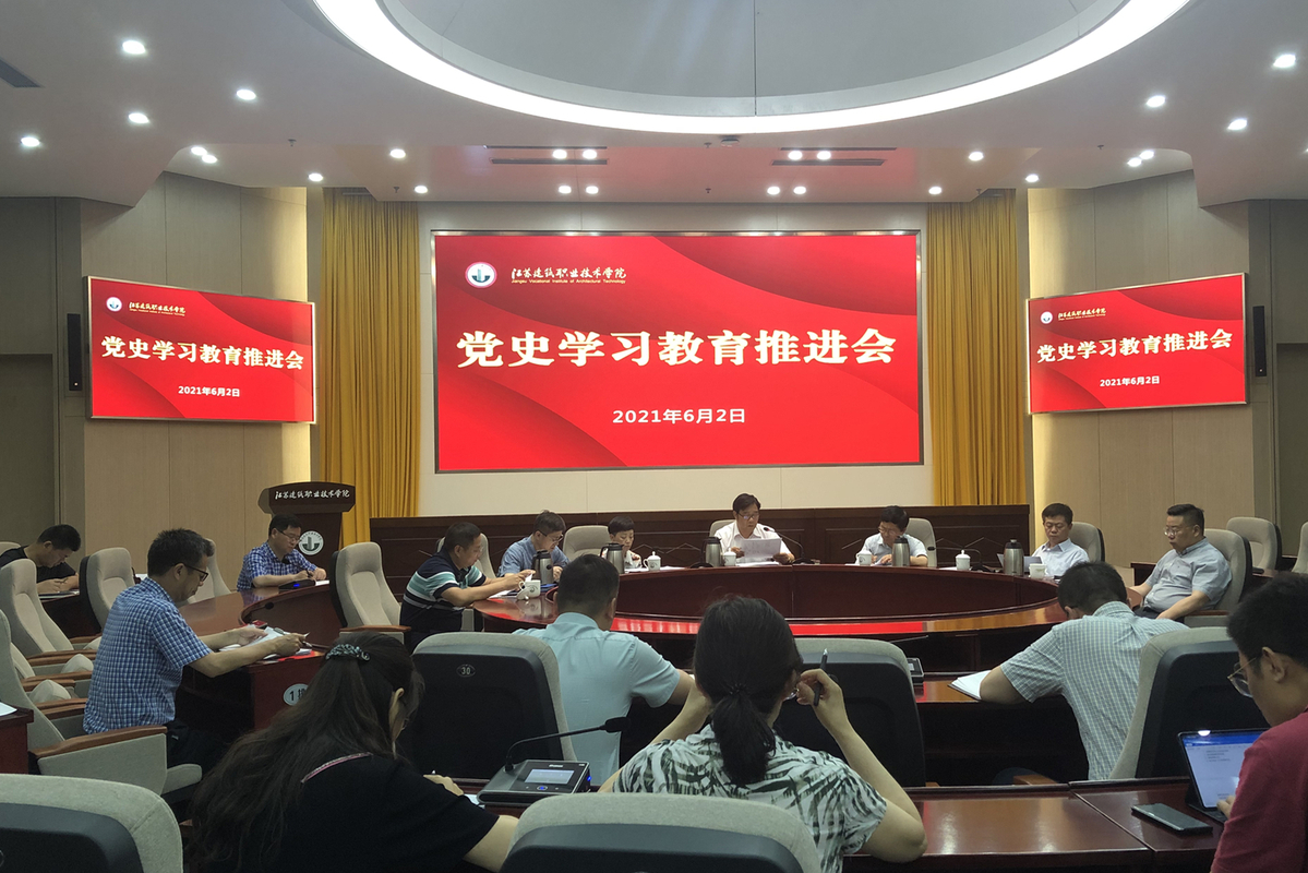 6月2日下午,学校党史学习教育推进会在学术报告厅召开。党委书记孙进教授,院长沈士德教授,党委副书记梁惠,纪委书记魏勇,副院长刘海波、曾凡远、蒋兆峰出席会议。会议由孙进主持,党史学习教育领导小组成员及各二级党组织书记参加会议。