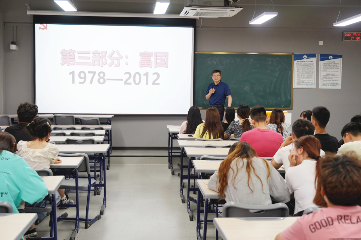 课堂上,各位领导以中国共产党百年奋斗历史的成功经验和优良传统为主线,按照时间脉络,通过史实案例、详实数据及清晰逻辑,从四个时期、九个阶段为学生们阐释了中国共产党历经百年风雨却能够长盛不衰的根本原因,引导同学们真正做到明理、增信、崇德、力行。