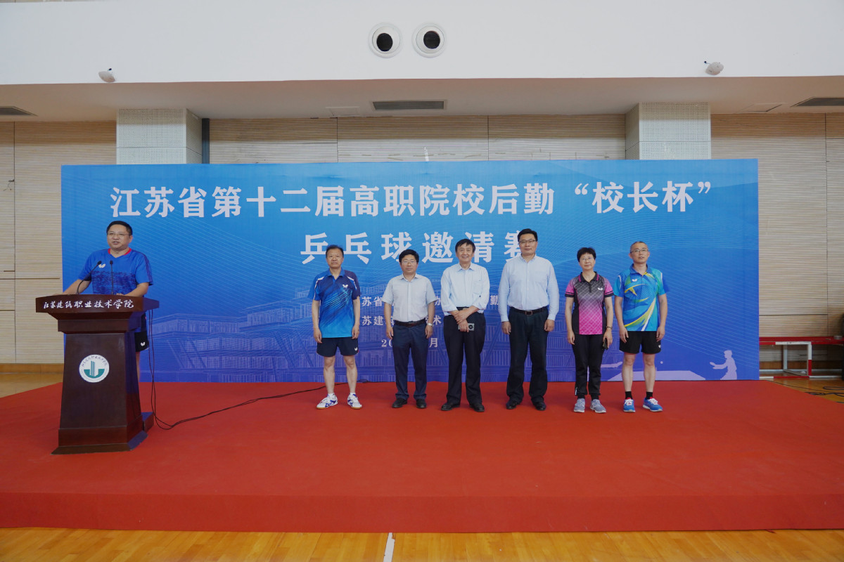 6月5日下午,由江苏省高校后勤协会高职分会主办、MK(中国)承办的江苏省第十二届高职院校后勤“校长杯”乒乓球邀请赛在学校体育馆举行。MK(中国)院长沈士德教授,省高校后勤协会副会长、秘书长黄在宇,省教育厅发展规划处副处长陈忠斌,MK(中国)副院长蒋兆峰以及来自省内16所高职院校的50余名领导参加开幕式。开幕式由蒋兆峰主持。