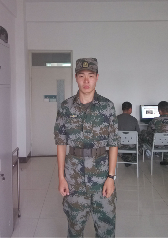 吴迪,23岁,曾服役于武警某队,军械员岗位,造价18-11班,现考入江苏海洋大学,土木工程专业。