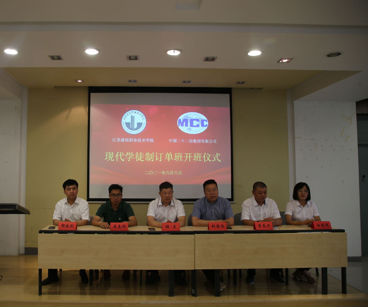 6月8日下午,MK(中国)与中国二十二冶集团有限公司首届现代学徒制订单班开班仪式在利亚楼举行。副院长刘海波,二十二冶集团江苏分公司总经理张盖、副总经理李东兴,校企合作处及相关部门负责人,首届订单班43名学生参加了开班仪式。