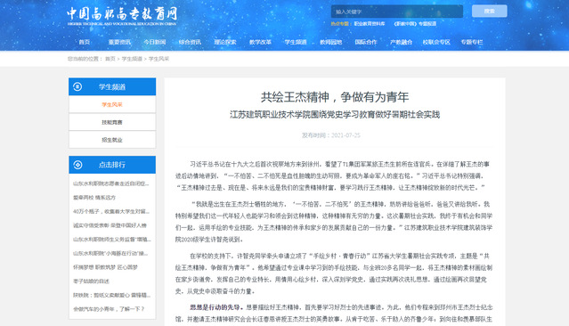 在学校的支持下,许智尧同学牵头申请立项了“手绘乡村·青春行动”江苏省大学生暑期社会实践专项,主题是“共绘王杰精神,争做有为青年”。他希望通过专业课中学习到的手绘技能,与全班20多名同学一起,将王杰精神的素材画绘制在家乡街道旁,发挥自己的专业特长,用情用心绘乡村,深入深刻学党史,通过实践再次洗礼思想,通过绘画再次回望党史,从党史中汲取奋斗的力量。
