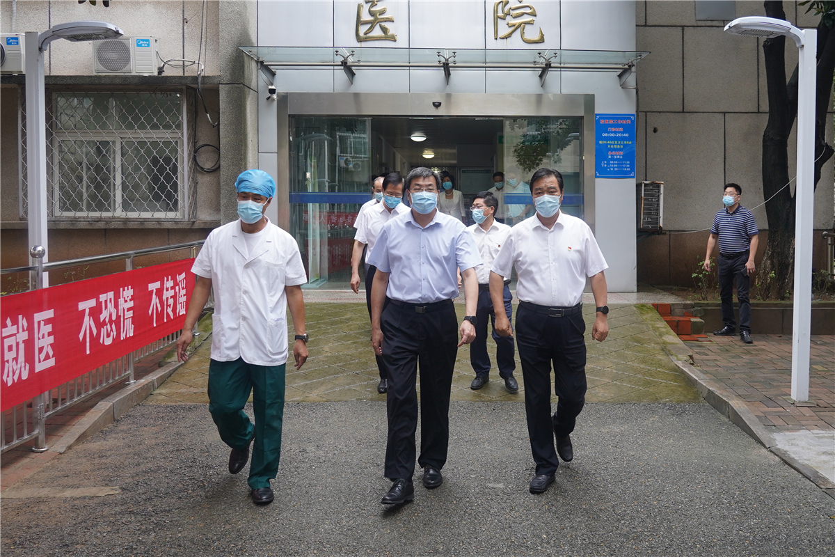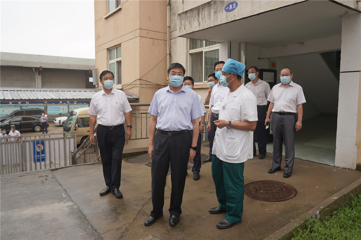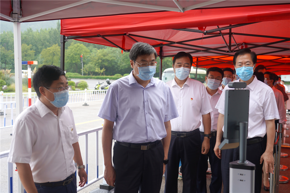 马欣副省长一行首先在学校西门实地查看学生返校流程演练及校园出入管理,随后来到校医院、学生公寓、学生食堂、应急隔离场所、教学楼、疫情防控工作专班、校园110指挥中心等重点区域现场察看。孙进书记、沈士德院长介绍了学校新学期疫情防控工作及学生返校、新生报到、线上教学等预案制定情况。马欣副省长边走边看,不时与学校有关部门负责人交流意见并听取汇报,重点检查关键环节疫情防控举措,详细了解校园管理、卫生防疫消毒等情况。