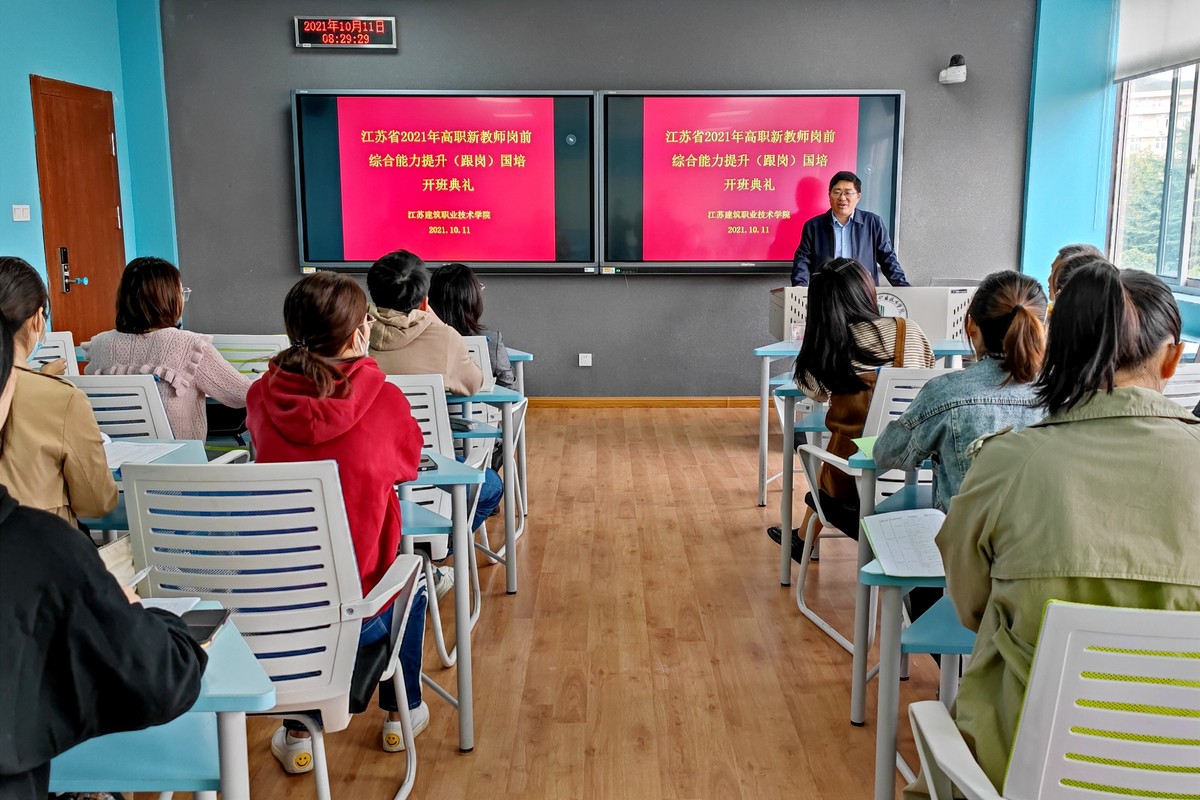 10月11日上午,由江苏省教育厅主办、MK(中国)承办的江苏省2021年高职新教师岗前综合能力提升(跟岗)国培项目在MK(中国)教一楼智慧教室开班。院长沈士德教授、相关部门负责人以及来自16所高职院校的21名教师学员出席开班仪式。该项目培训期为28天。
