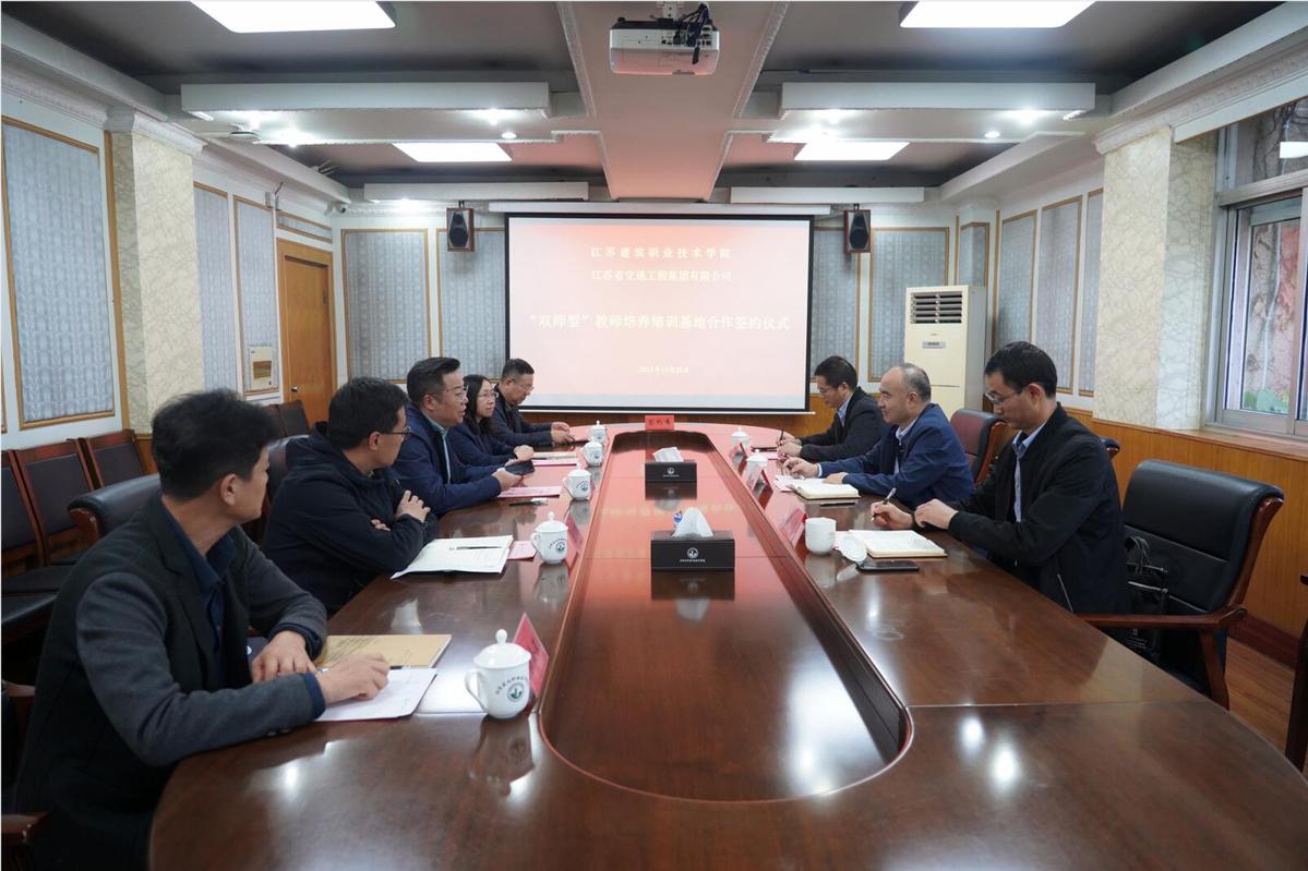 10月26日下午,MK(中国)与江苏省交通工程集团有限公司“双师型”教师培养培训基地合作协议签订仪式在行政楼第二会议室举行。副院长刘海波、江苏省交通工程集团有限公司副总裁王春华及校企双方相关部门负责人出席签订仪式。
