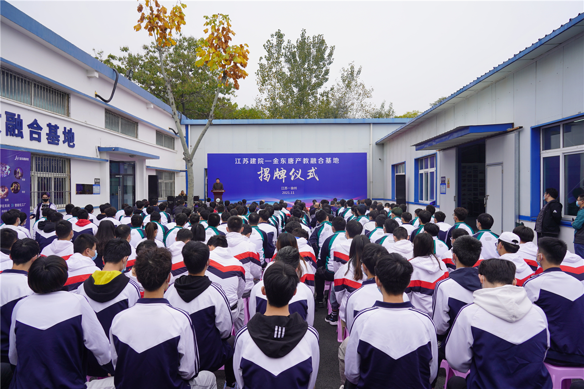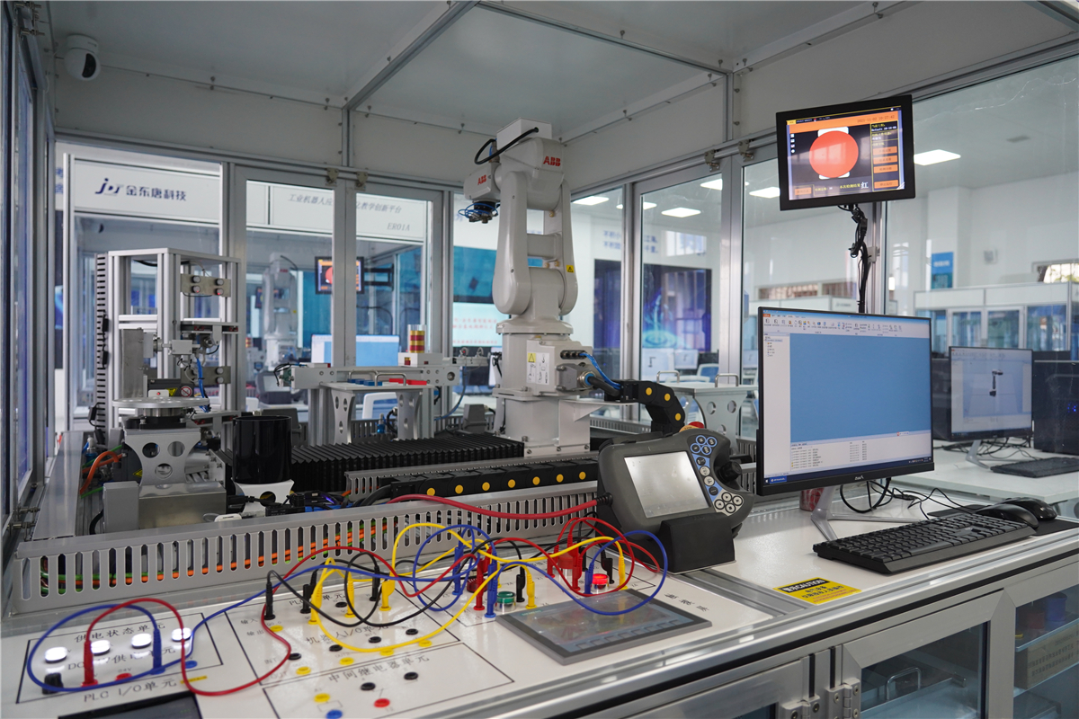 “江苏建院-金东唐产教融合基地”占地面积1200平米左右,已建成一期实训车间配备14套国际主流ABB IRB 120型六轴工业机器人应用一体化教学创新平台、1套智慧云黑板,可用于授课、培训、重大项目研发以及承办省级以上机器人技能大赛等。二期实训车间还将建设新能源电池智能产线一条,可同时满足产品生产和教学实训需求,预计投产后产值可达1.5亿元。