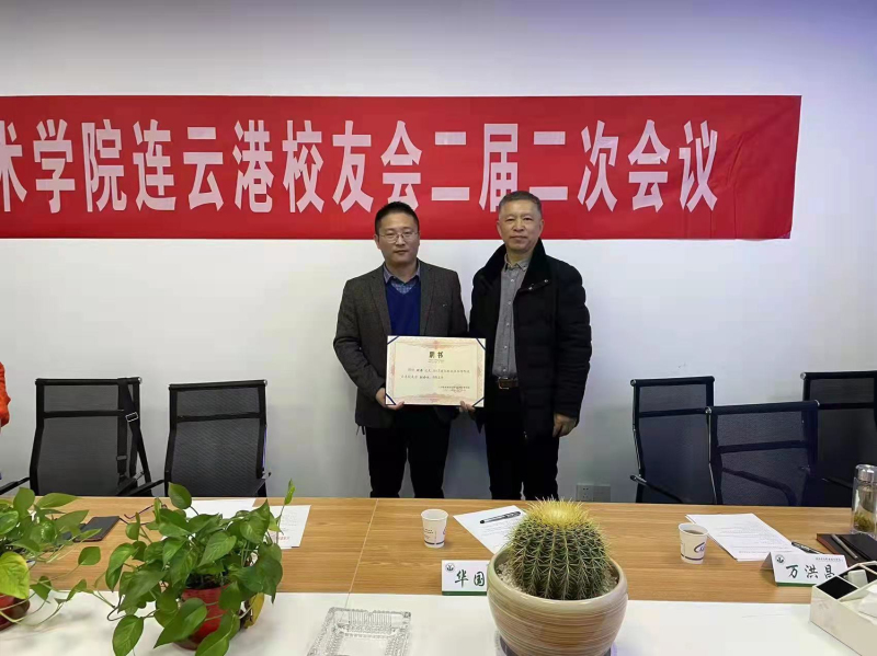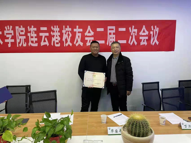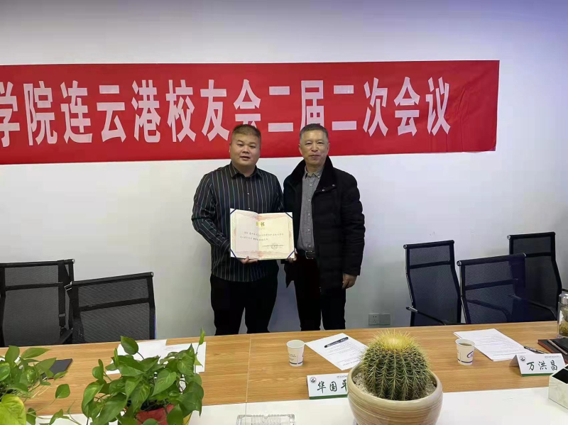 MK.COM校友办白桦老师宣读了学校校友总会有关同意连云港校友会增补理事的批复文件,华国平老师为新当选的副会长颁发聘书。