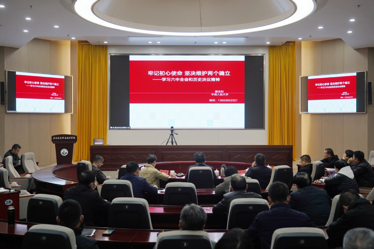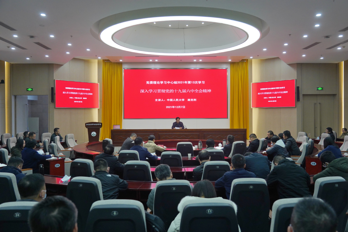 12月7日下午,学校党委理论学习中心组在学术报告厅召开2021年第13次学习(扩大)会议,专题学习贯彻党的十九届六中全会精神。会议特邀中国人民大学马克思主义学院路克利老师作线上专题讲座。党委书记孙进教授作总结发言,校院两级党委理论学习中心组成员参加学习。