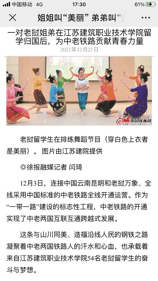 “徐州是我们的第二故乡,希望以后能坐火车回到学校看望母校的老师。” 彭城说,他们已回到老挝,分别在老挝万荣站和万象站担任客运员和车站值班员。为了中老铁路的运行与建设,会与姐姐一同努力,服务好这条跨越山河的“友谊之路”。