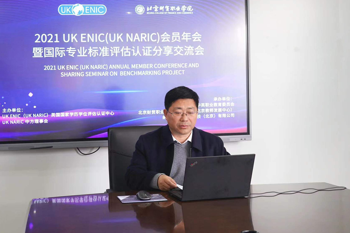 1月3日,2021 UK ENIC(UK NARIC)会员年会暨国际专业标准评估认证分享交流会在北京举行,院长沈士德教授应邀在线参会并作题为“深化合作交流,在高职专业国际化征程上开拓奋进”的交流发言。