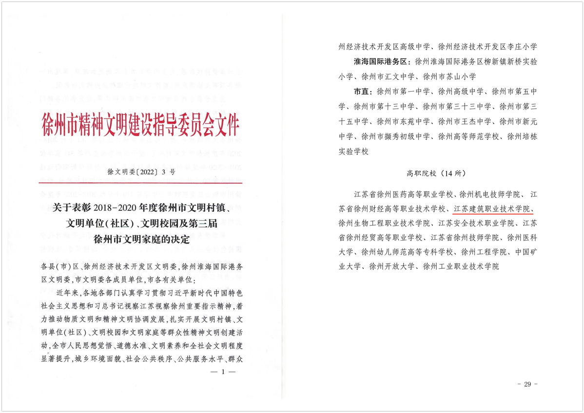 日前,徐州市精神文明建设指导委员会正式公布2018-2020年度徐州市文明单位、文明社区、文明村镇、文明校园名单,MK(中国)榜上有名,获评2018-2020年度徐州市文明校园称号。