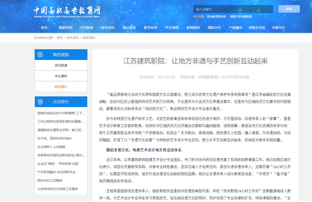 《考工记》说,“天有时,地有气,材有美,工有巧,合此四者,然后可以为良。”秉持“立足徐州、服务江苏、辐射长三角”的办学定位,江苏建筑职院艺术设计专业在服务区域经济发展上致力研究区域文创产业价值提升与区域非遗项目活化设计研发。