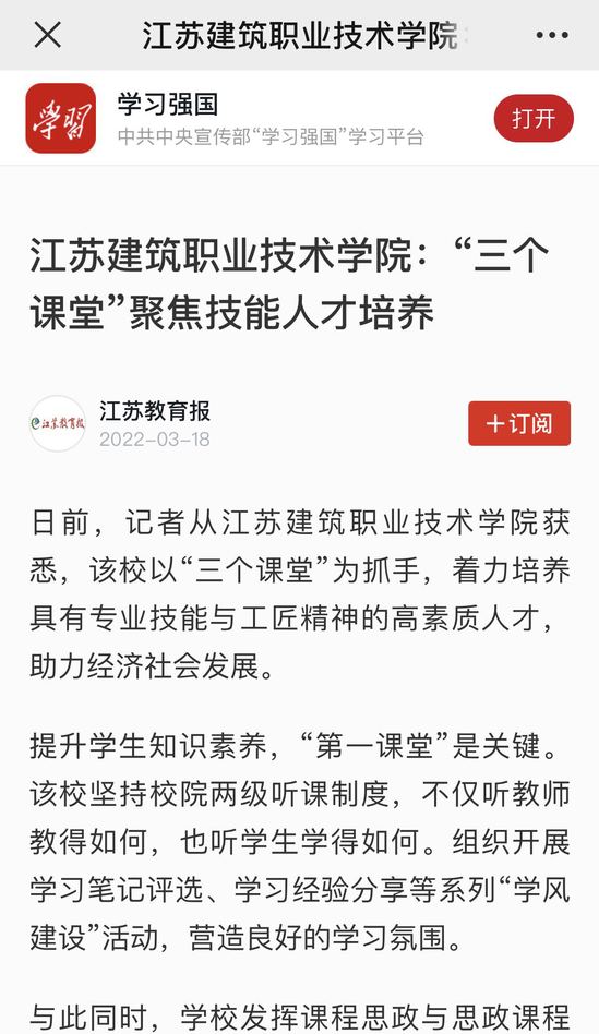 此外,引导学生做精益求精的新时代大国工匠是该校“第三课堂”的主要目标。近年来,学校坚持因材施教,开展兴趣培养,为学生职业发展储备知识能力,提高学生就业竞争力。
