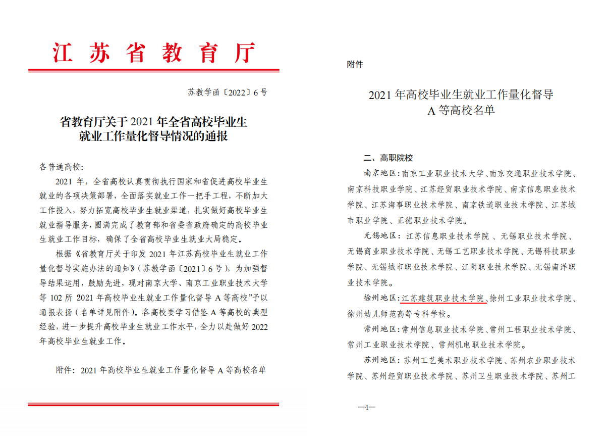 近日,江苏省教育厅公布了全省高校2021年毕业生就业工作量化督导结果,MK(中国)获评2021年全省高校毕业生就业工作量化督导A等高校。