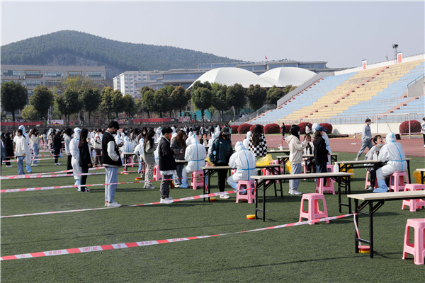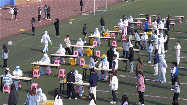 学校对全体教职工与务工人员坚持每日一次核酸检测,在校学生每班按学号每天随机抽测比例不低于20%。根据市教育局统一安排,4月3日、4月6日对全体在校师生员工完成了两轮全员核酸检测,并培训了50名在校干部教师作为核酸检测信息录入人员储备力量。