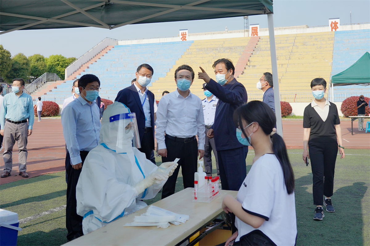 李勇一行实地查看了校园进出管控、全员核酸检测等方面的情况,对学校疫情防控工作表示肯定。他指出,学校疫情防控事关重大,不能有丝毫松懈,要筑牢“外防输入”第一道防线,从严做好重点人群管理。要强化校园管理,严格落实封闭管理规定,分层级落实防控责任,科学信息化监管,确保封闭期间在校师生定心安心舒心。